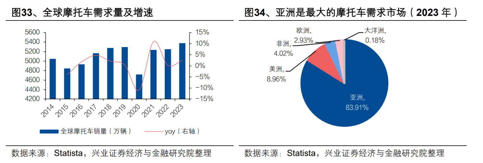 受益于墨西哥等拉美区域终端需求旺盛,公司小排量摩托车(≤250cc)出口销量同比大幅增长39%,为公司贡献了稳健的业绩增量。