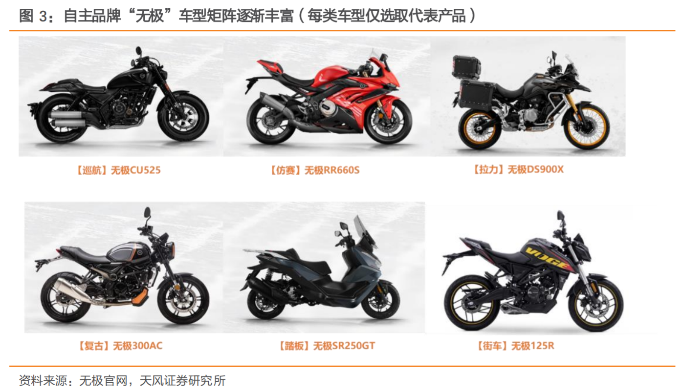 公司通过发布自主高端品牌“无极”,由B端业务向C端拓展,并布局了电摩和全地形车等自主品牌业务。
