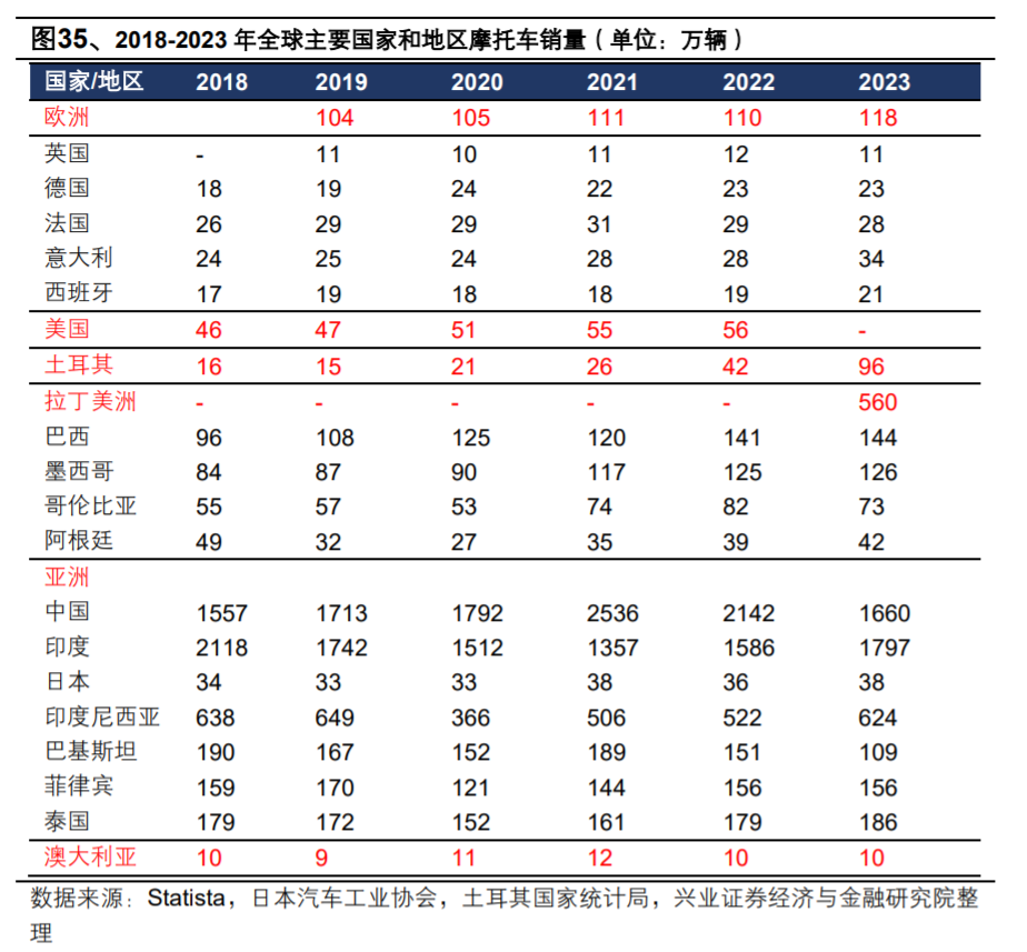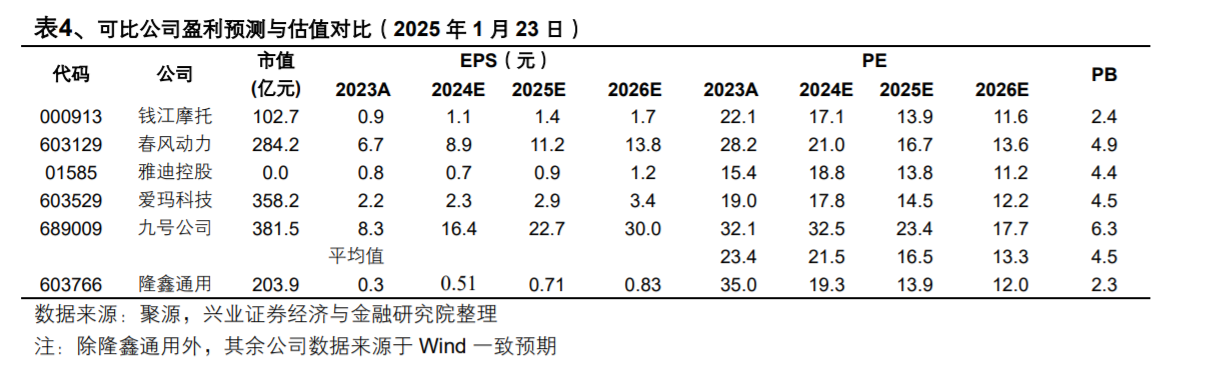 (2)外销:2025年外销增长主要来源于新品和区域开拓两方面。产品端看,2025年无极将推出针对欧洲市场的600和800cc休旅、中小排踏板,以及针对土耳其市场的入门排量街车,切中对应市场的核心需求点;区域端看,欧洲一梯队国家如德国、法国不断发力,墨西哥、阿根廷等拉美市场有望贡献新增量。