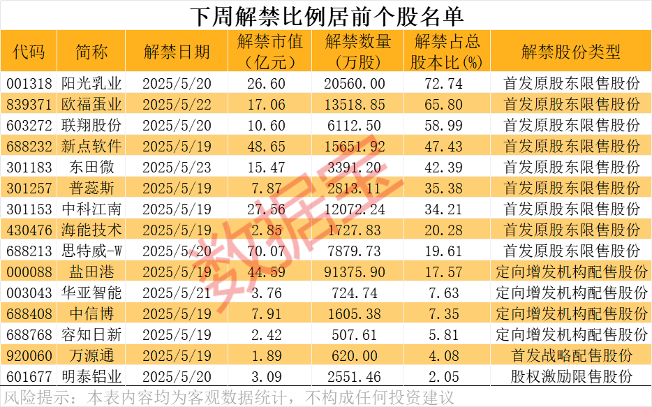 下周解禁个股名单已出炉!8股解禁超10亿元