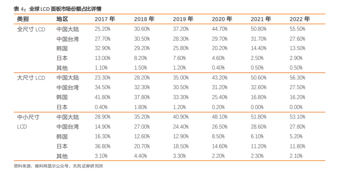 LGD(乐金显示):一季度LCD面板出货3.6M,同比增长15%;OLED面板出货1.1M,增长22%。
