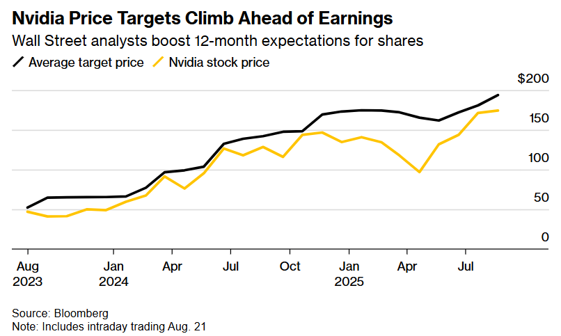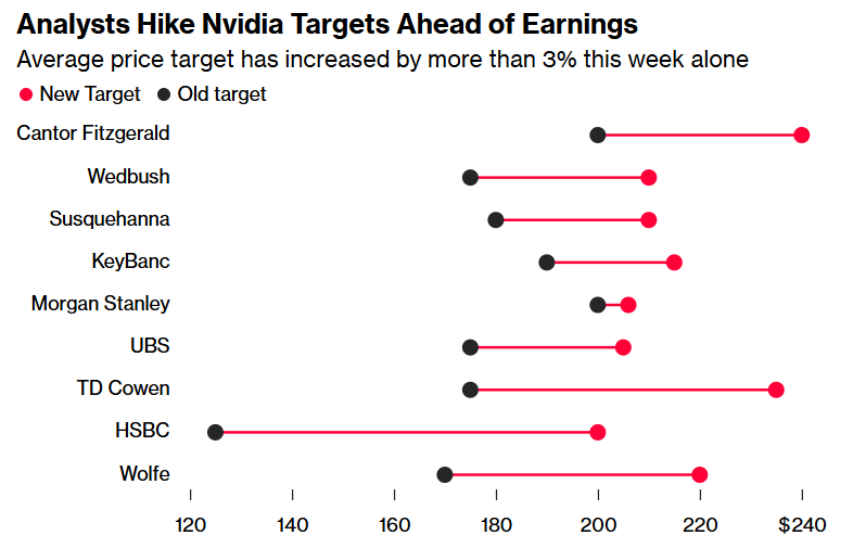 英伟达目标价在业绩前攀升——华尔街分析师密集上调12个月股价预期