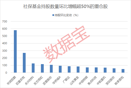 从持股数量变动上来看,与去年三季度相比,48股第四季度获社保基金增持,包括华润双鹤、巨星农牧、永兴材料等,50股为新进重仓,包括比亚迪、中国海油、顺丰控股等,34股持股数量不变,柳药集团、新疆众和、金宏气体等52股遭社保基金减持。