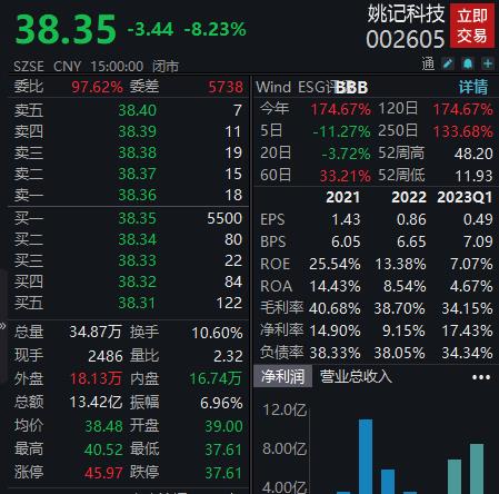 业绩方面,姚记科技2023年一季报显示,一季度实现营业收入11.88亿元,同比增长17.64%;净利润1.98亿元,同比增长116.02%。