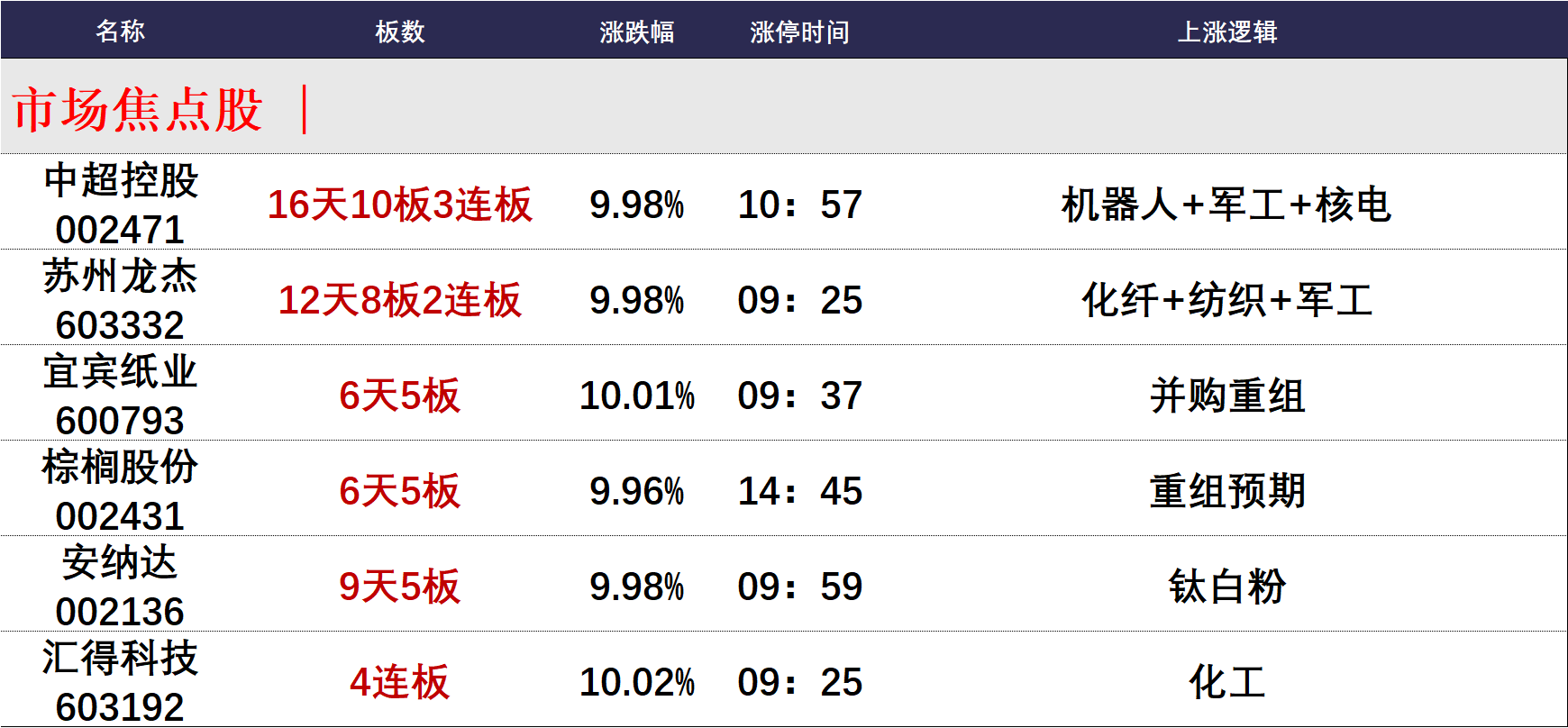 个股方面,全市场超3700只个股上涨,短线情绪迎来一定修复,苏州龙杰超预期一字涨停,中超控股走出16天10板晋级3连板,宜宾纸业、棕榈股份、通达电气等反包涨停,人气股中毅达也涨超9%。不过值得注意的是,王子新材、中洲特材尾盘大幅跳水,表明短线仍有分歧。