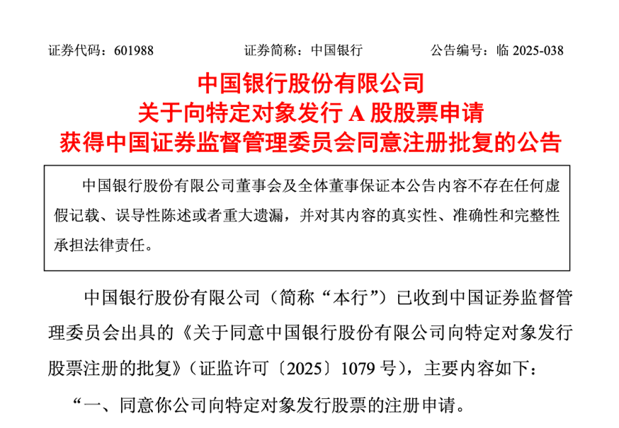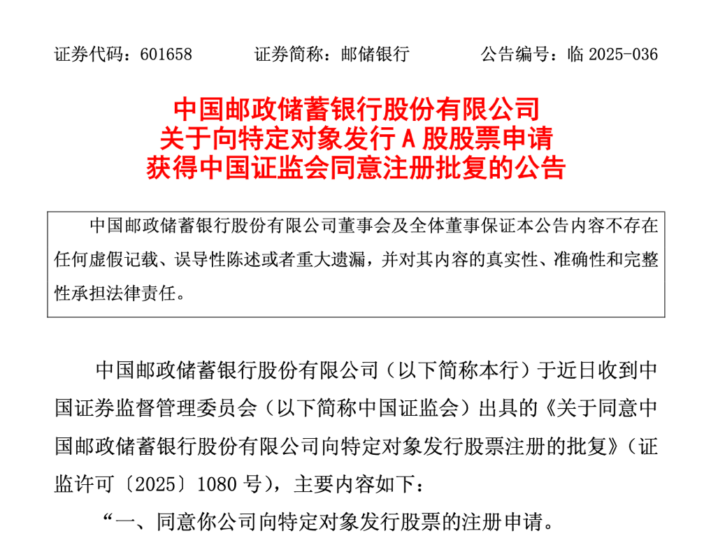 5月23日晚间,中国银行、交通银行、邮储银行发布公告称,向特定对象发行A股股票申请已获得中国证监会同意注册批复。