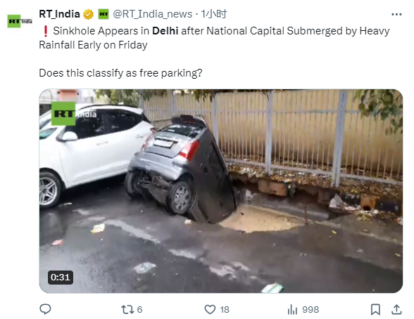 这样的暴雨也在印度引起了洪涝和停电。据报道,新德里许多公路和基础设施已经被水淹没,很多汽车被困在齐腰深的水中,部分道路出现了塌陷,地铁服务也受到影响。