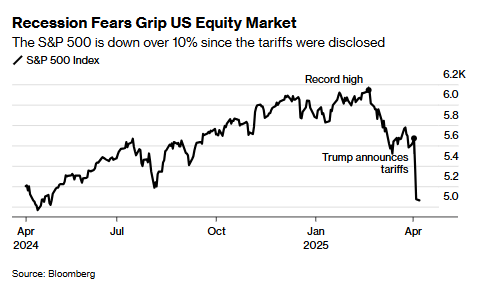 贝莱德首席执行官Larry Fink此前表示,与他交谈过的大多数首席执行官都认为美国已经处于衰退之中。与此同时,交易员们大幅增加了对美联储将降息的押注,因为他们担心美国政府的贸易政策可能导致全球经济萎缩。