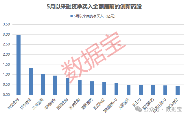 资金面上,创新药板块本月以来获得融资净买入8.61亿元,42只创新药概念股获得杠杆资金加仓,特宝生物、甘李药业、三生国健净买入金额居前,分别达到2.96亿元、1.31亿元、1.02亿元。