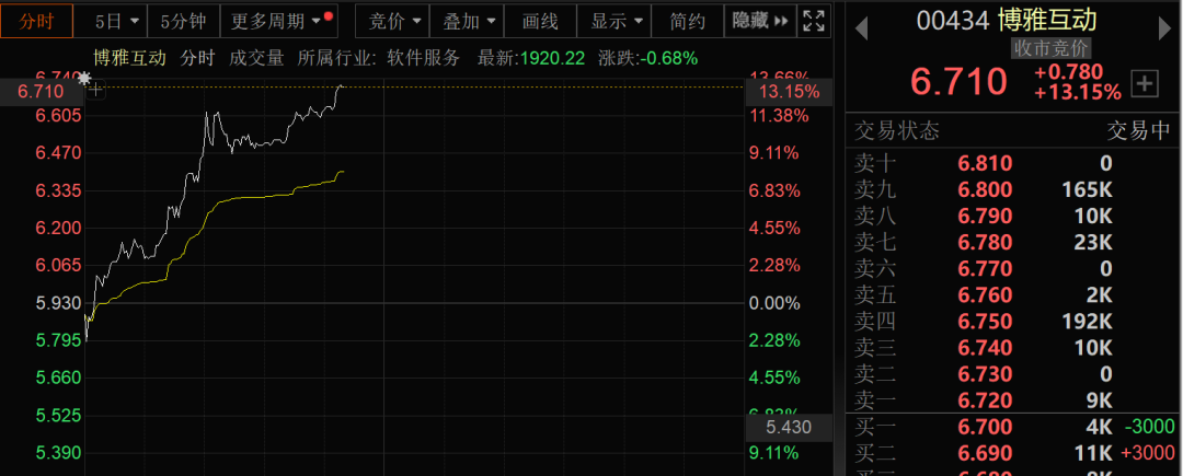 港股游戏概念也跟随上扬,博雅互动一度放量涨超13%,创2015年6月以来近10年新高;中手游、哔哩哔哩、创梦天地等涨幅居前。