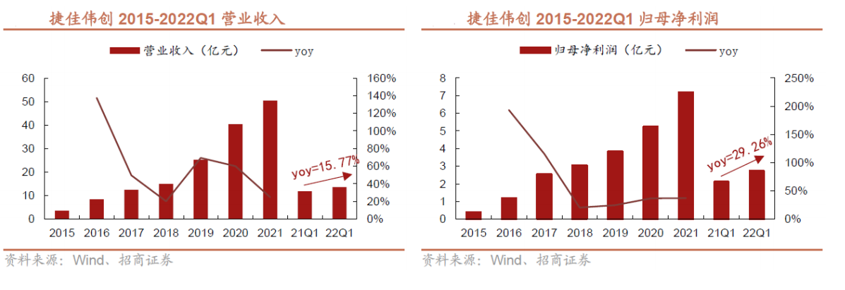 2021年公司营收50.47亿元,同比+24.80%;归母净利润7.17亿元,同比+37.16%,即使宏观经济因素与国内外形势多变,公司业务依旧保持稳定增长,体现良好的抗风险性。2015-2021年公司营业收入CAGR达56.03%,归母净利润CAGR达61.7%,均呈现高速上升态势。