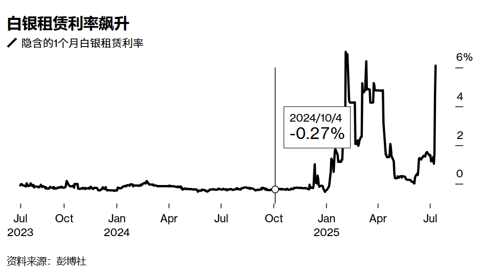 值得关注的是,当前市场紧张情绪已反映在交易细节中。一个月期白银隐含借贷成本飙升至6%以上,远超通常接近零的水平,显示实物白银供应趋紧。与此同时,伦敦现货白银与纽约9月期货合约的价差持续扩大,这一现象与今年年初的情形高度相似,当时市场担忧美国加征关税,导致黄金、白银从伦敦向美国的运输量激增,直接推高两地价差。