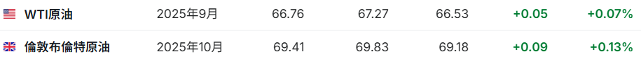 3. 截至发稿,WTI原油涨0.07%,报66.76美元/桶。布伦特原油涨0.13%,报69.41美元/桶。