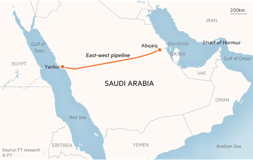 沙特东西向输油管道横贯阿拉伯半岛,从该国东部大型油田直通西部工业港口城市延布。这条管道的建设源于上世纪80年代的两伊战争,当时霍尔木兹海峡曾发生船只遇袭事件,但远不及当前冲突造成的“近乎关闭”的程度。