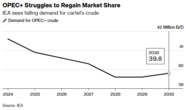 尽管以沙特阿拉伯为首的欧佩克+联盟近几个月开始提高过去几年暂停的产量,但IEA认为,随着竞争对手扩大产量,对这些额外石油的需求有限。报告称:"欧佩克+可能难以重新获得大量市场份额。"