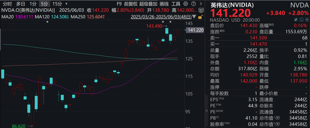 热门科技股多数上涨。美光科技涨超4%,英特尔、AMD涨超2%。英伟达涨近3%,市值超过微软,达到3.45万亿美元,重新成为全球市值最高公司。