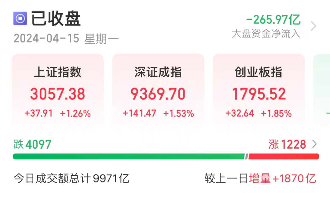 4月15日,A股市场呈现冰火两重天。大盘股强势上涨,上证50、深证50、创业板50均涨超2%。权重股的代表贵州茅台上涨2.38%,最新A股市值重回2.1万亿元。油气巨头中国石油大涨3.89%,最新收盘价创八年来新高,A股市值升至1.73万亿元,与市值第一股的差距缩小。