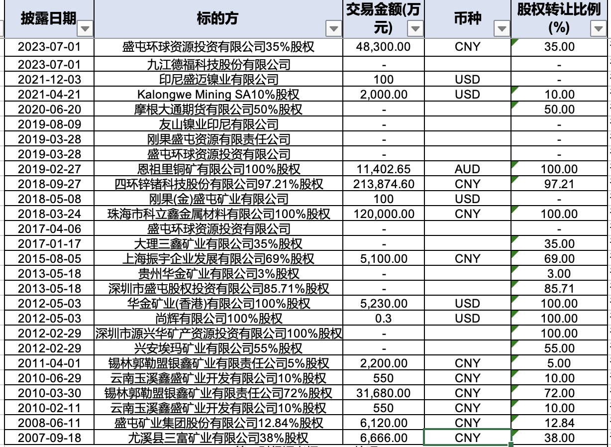作为姚雄杰的“发家大本营”, 盛屯矿业从2007年开始不断融资并购,规模持续扩张。记者据Choice数据梳理,近17年来,盛屯矿业实施完成27起并购,其中10起(有数据统计的)国内并购交易金额就已达43.50亿元。