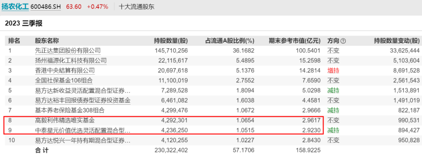 卓利伟管理的高毅利伟精选唯实基金三季度分别减持华峰化学、川恒股份801.26万股、149.30万股,持股数降至2093.75 万股、224.56万股,持股市值也分别为1.48亿元、 4003.88万元。