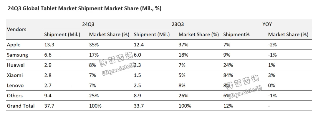群智咨询:三季度全球平板电脑品牌市场出货量3770万 同比增长12%