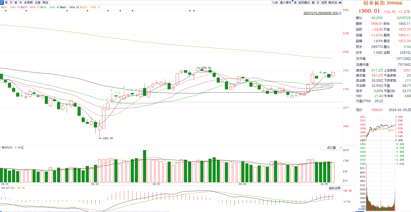 而创业板指来看,虽然不是很强,但创业板投机情绪却是当下的主流,因此,只要创业板指没有极端波动,投机情绪还是会延续。