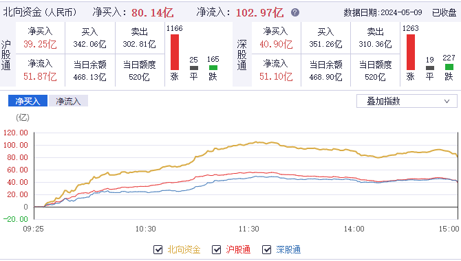 盘面上,航运、电力设备、军工、细胞免疫治疗等板块涨幅居前,染料、ST板块、合成生物、教育等板块跌幅居前。同时,沪深两市总成交额9011亿,较上个交易日放量367亿。而北上资金,则在今日净买入80.14亿,呈现出大幅流入态势。