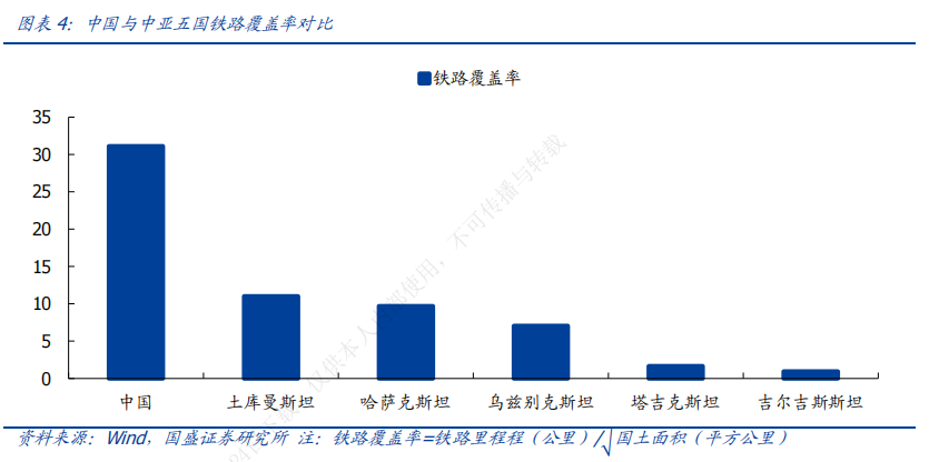 伴随伊朗与沙特外交关系和解,中国与中东地区的贸易往来将进一步加深,亟需通过中亚五国的铁路实现与中东各国的紧密连接,其交通基础设施建设意义重大。当前中亚各国多以公路运输为主,高质量公路建设仍有较大需求。铁路建设方面,中亚国家自独立至今,铁路运输业仍处于恢复期,且铁路网分布不均,塔吉克斯坦和吉尔吉斯斯坦更为薄弱,铁路建设重要性与紧迫性不断提升,市场空间广阔。
