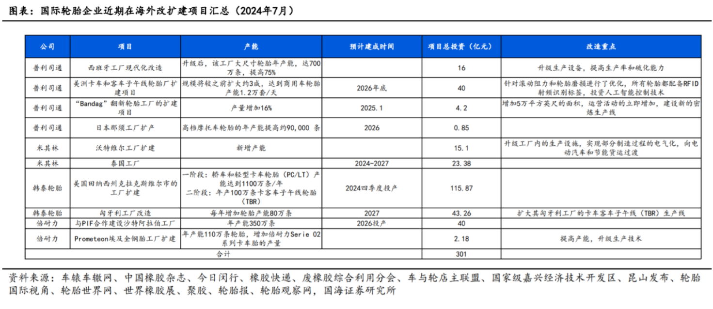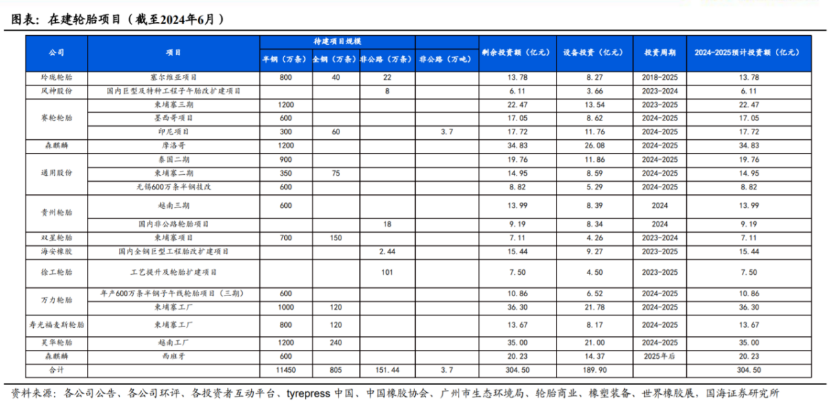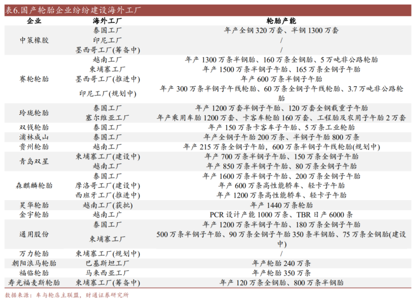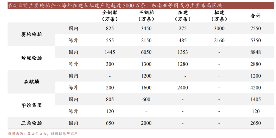 目前主要轮胎企业海外在建和拟建产能超过5000万条,东南亚等国成为主要布局区域。
