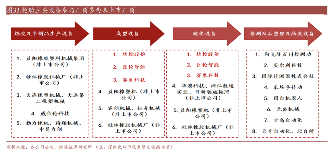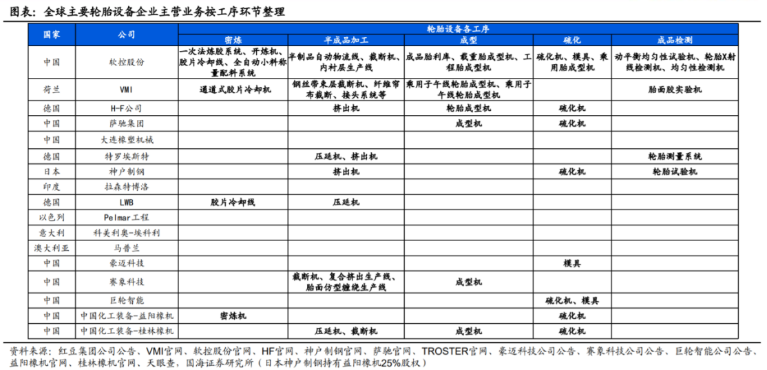 炼胶、成型、硫化为关键设备环节,“上市公司”+“一级老牌厂商”共同参与。