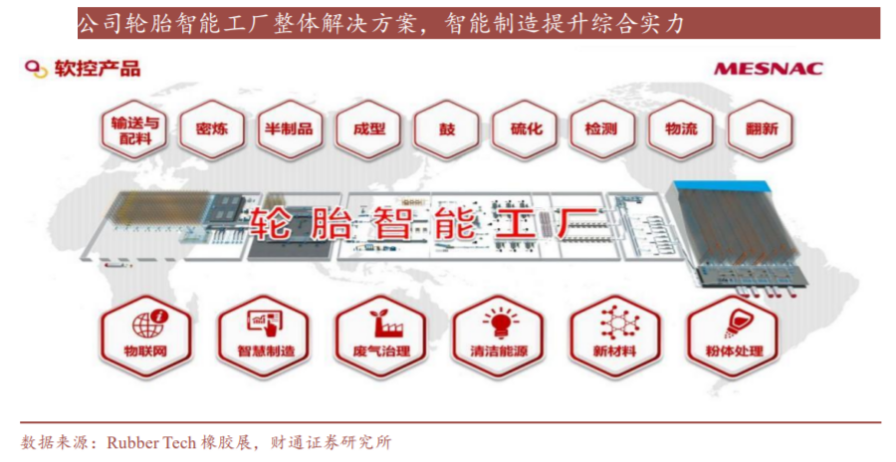 致力于橡胶行业应用软件、信息化装备的研发与创新,为轮胎企业提供软硬结合、管控一体的智能化整体解决方案,推动工业智能化发展,并广泛涉足物联网、RFID、自动化物流、橡胶新材料等领域。公司产品体系不断完善,目前已覆盖轮胎生产的配料、密炼、压延、裁断、成型、硫化、检测等环节。