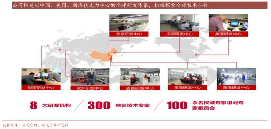 推进产学研一体化发展,研发平台优势突出。推进产学研一体化发展,研发平台优势突出。公司搭建以中国、美国、斯洛伐克为中心的全球研发体系,积极探索全球技术合作。