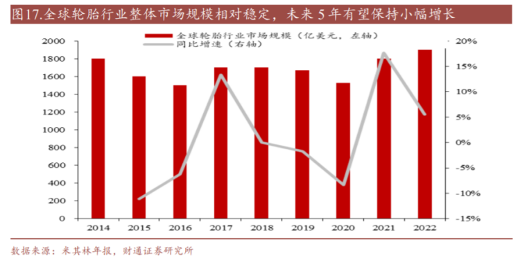 轮胎行业需求回暖,国产企业加快全球化布局。全球轮胎市场需求复苏,迎万亿级别市场景气转向。全球轮胎行业整体市场规模相对稳定,未来5年有望保持小幅增长。