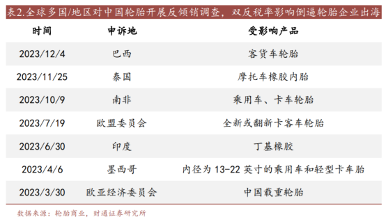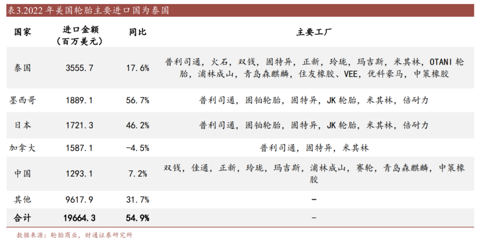 中国轮胎企业中期扩产动力:受反倾销调查影响,轮胎企业布局海外产能双反税率影响倒逼轮胎企业出海,泰国已成为美国轮胎第一大进口来源国。