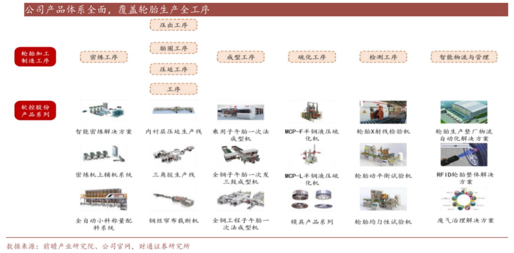 公司是稀缺的轮胎企业整体解决方案供应商:公司产品覆盖轮胎生产全工序,顺应轮胎机械“智能化+体系化”的升级趋势,持续加大研发投入,拓宽产品SKU强化竞争力。