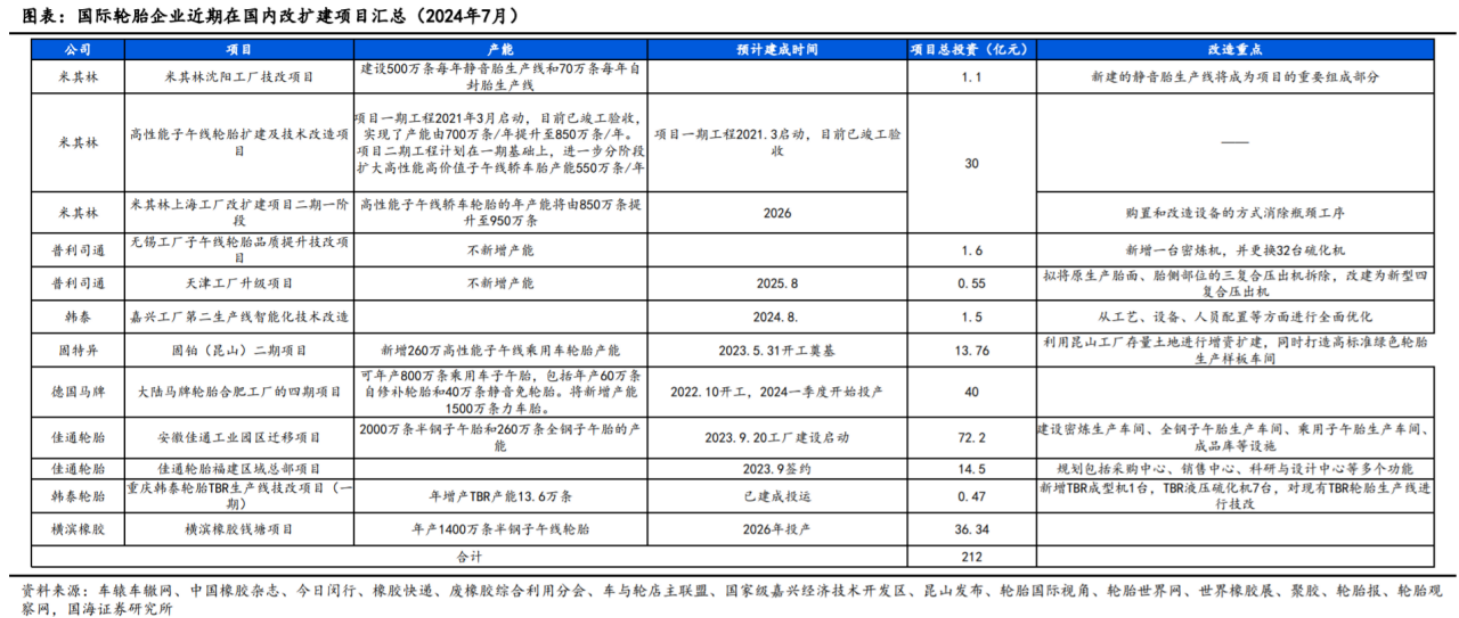 存量需求:海外轮胎巨头增加中国产线改造升级投入。