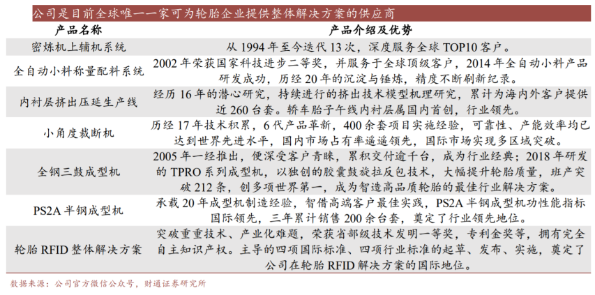 公司为轮胎企业提供整体解决方案的供应商,顺应轮胎机械“智能化+体系化”的升级趋势。