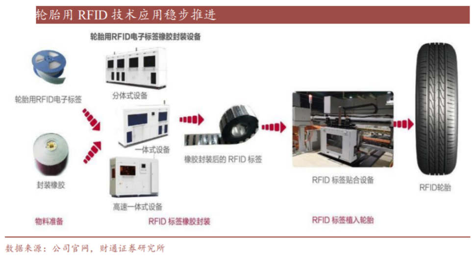 公司长期致力于轮胎用RFID技术的研发,成为国际标准制定者之一。作为轮胎条形码的“无线”版本,RFID技术具有防水、防磁、耐高温、使用寿命长、读取距离大、标签上数据可以加密、存储数据容量更大、存储信息更改自如等优点。