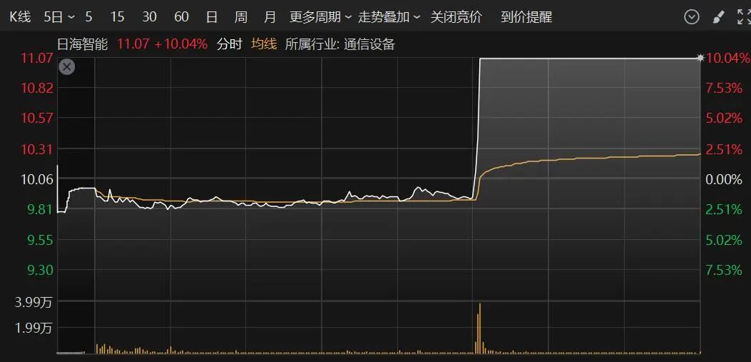 多只机器人概念股尾盘异动拉升,先是日海智能午后垂直涨停,香山股份、巨一科技等多股也跟随快速涨停;冀凯股份、三维通信、亿嘉和等则在临近收盘约20分钟,快速上涨,或封于涨停或触及涨停;同一时间,拓斯达、禾川科技、恒工精密等股也快速上攻。