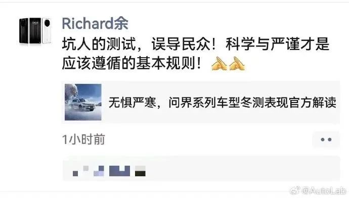 就在一天前,华为智能汽车解决方案BU董事长余承东在微信朋友圈就此前问界M7参与《2023懂车帝冬测》的测试结果进行表态:坑人的测试,误导民众!科学与严谨才是应该遵循的基本规则。