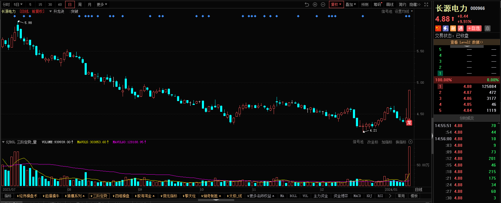 3)参考技术指标:长源电力-升龙诀指标-出现龙信号