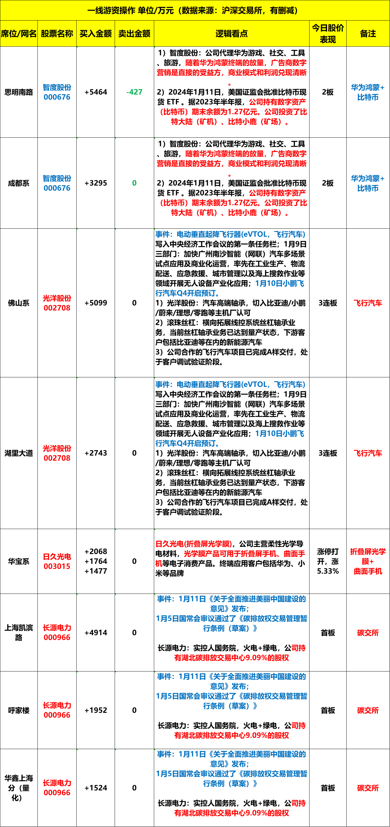2024年1月12日周五,龙虎榜解析。