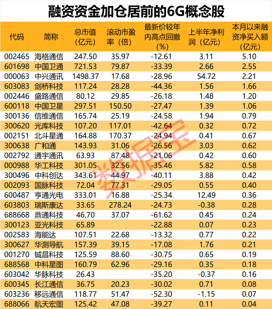 通信龙头透漏6G有突破!融资客加仓概念股出炉
