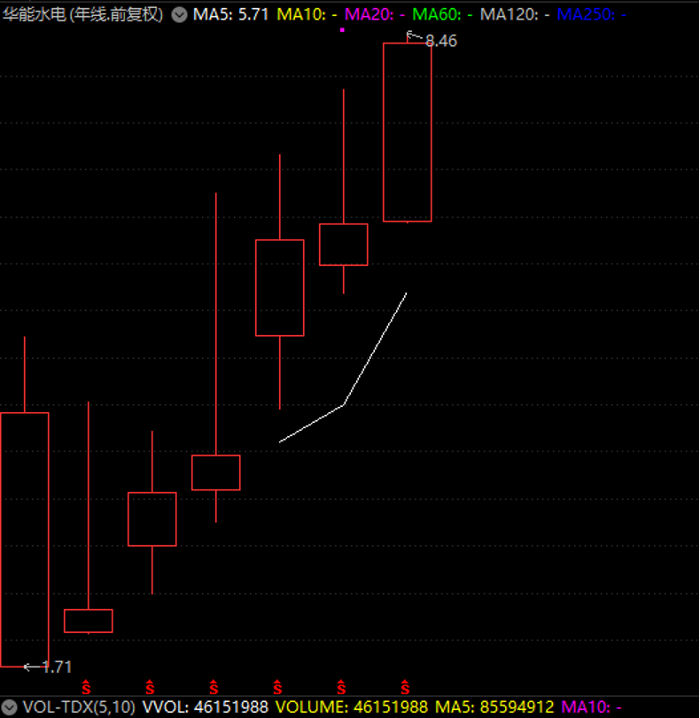 在A股市场上,能和华能水电一样实现股价连年上涨的大白马股也不多见。