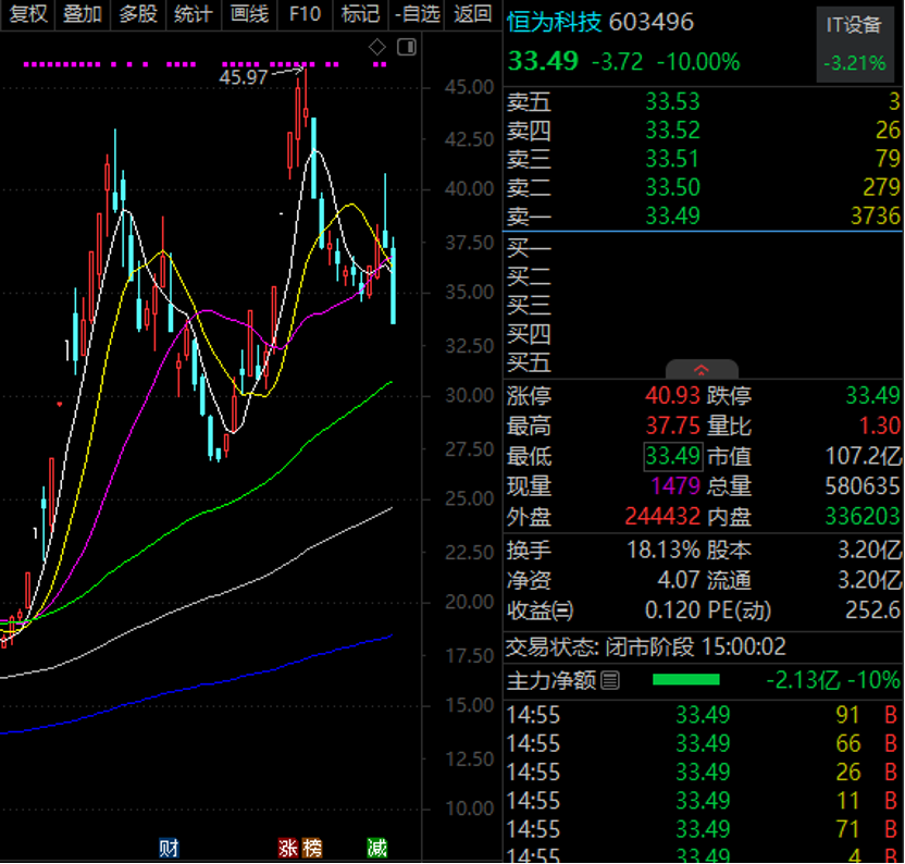 今天“唯二”跌停的股票,恒润股份和恒为科技均为算力概念,其中恒润股份属于算力租赁龙头,恒为科技则为华为算力龙头。