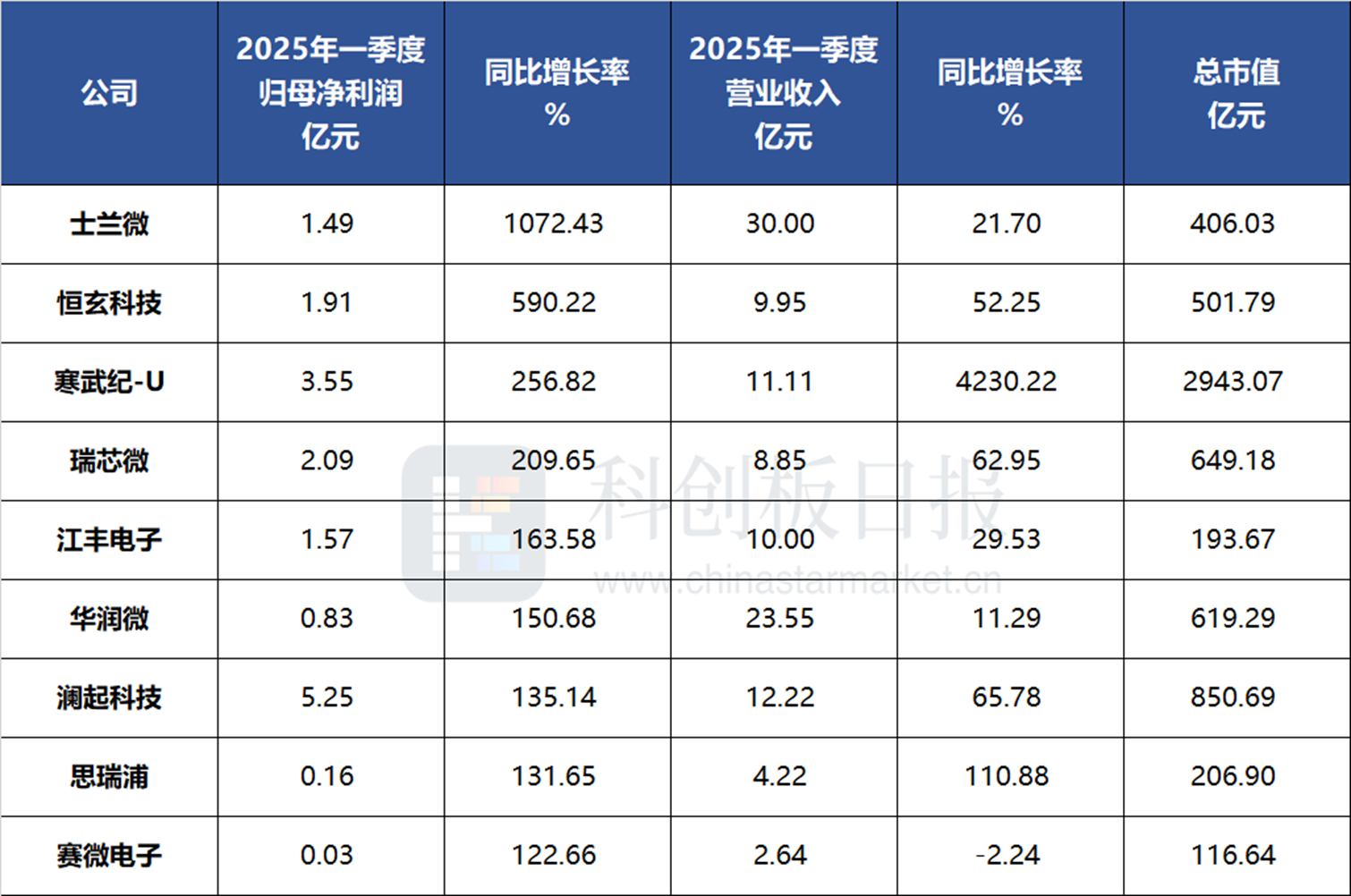 ②总市值超过100亿的半导体行业公司中,有13家公司一季度净利润出现下滑,其中不乏格科微、卓胜微、斯达半导等熟悉的名字。