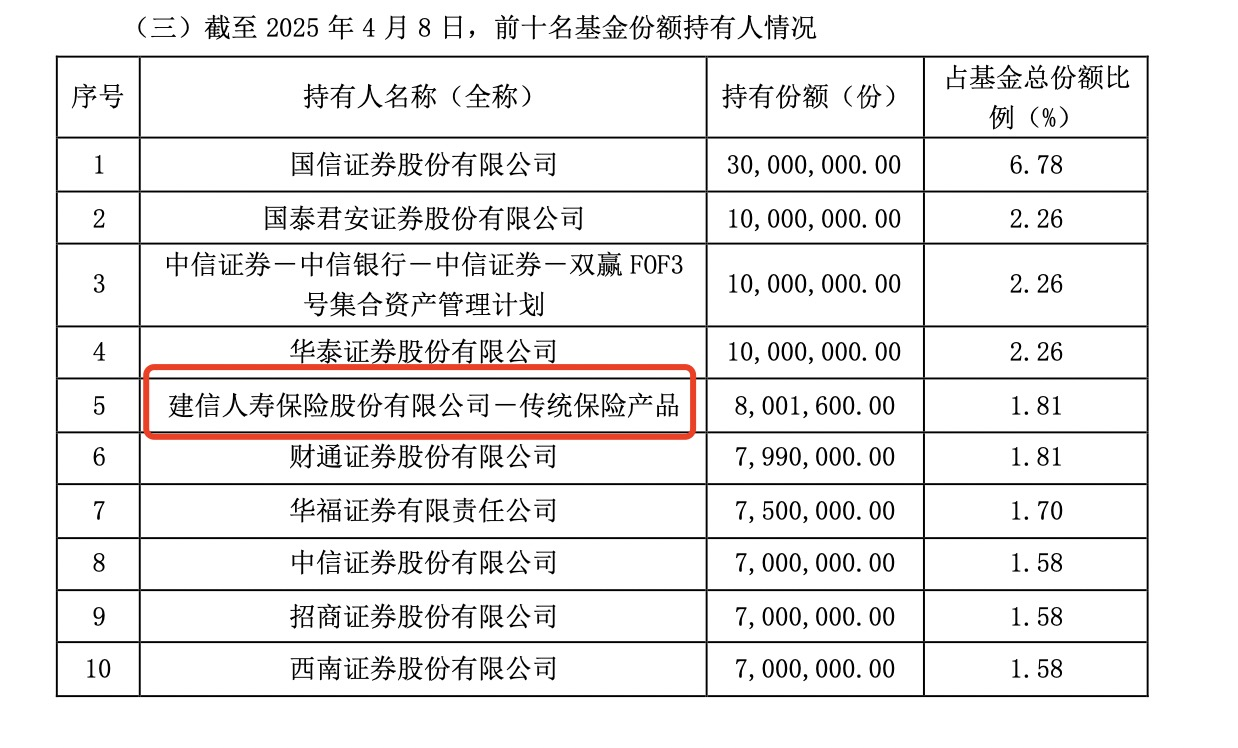 除私募机构外,险资也在买。截至4月8日,建信人寿保险股份有限公司-传统保险产品为华宝自由现金流ETF的第五大持有人,持有份额达800万份。