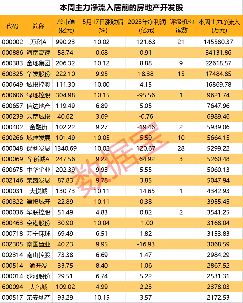 楼市迎多重利好!地产股狂飙 25股获资金大手笔加仓