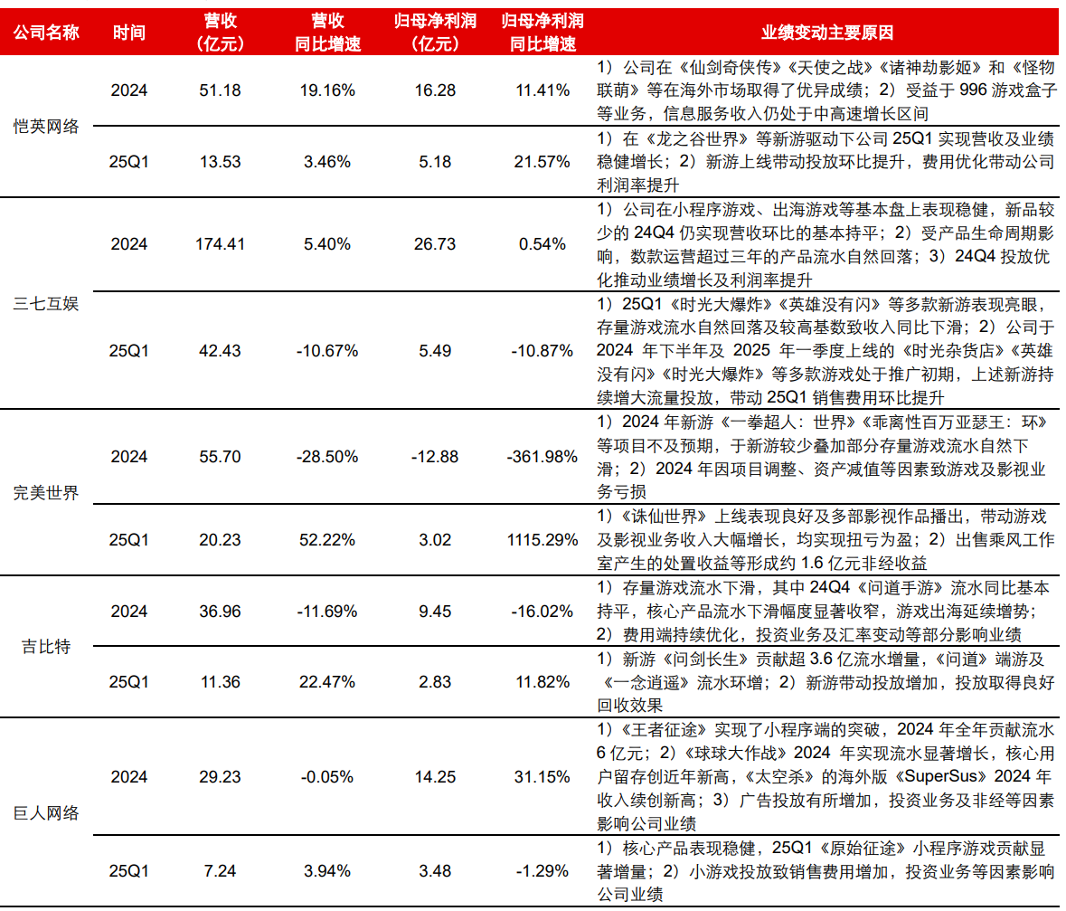 传媒行业24年年报&25Q1季报综述:行业整体回暖,游戏板块表现亮眼