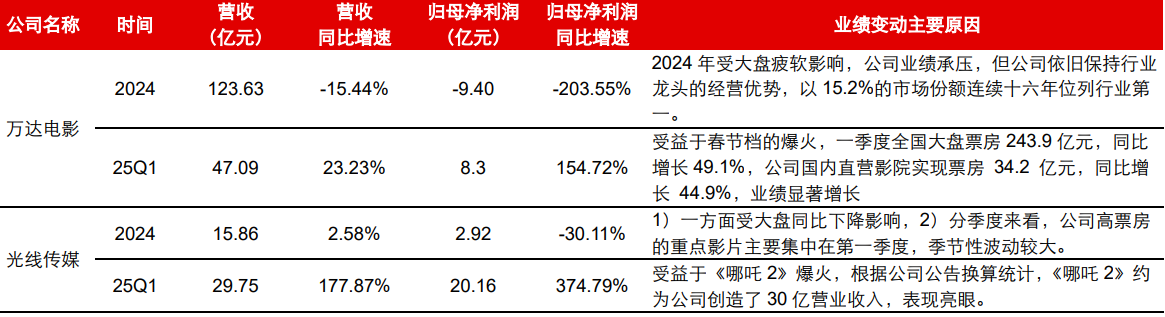 影视院线板块呈现出季节性波动特征。受益于 2025 年春节档爆火,Q1 全国票房突破前高,院线及影视制作公司业绩大幅改善,部分公司借助优质 IP 打造多元化体系,有望实现业绩增长。