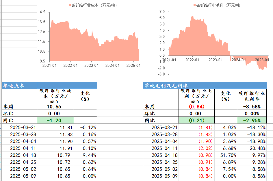 碳纤维行业成本和行业毛利